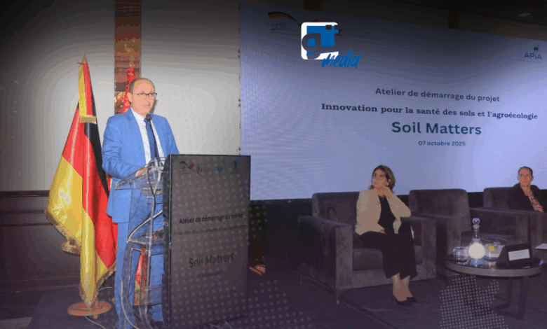 في إطار التّعاون التّونسي الألماني في مجال البيئة والموارد الطبيعيّة، انتُظمت اليوم الثلاثاء 7 أكتوبر 2025، ورشة عمل تحت إشراف رئيس ديوان وزير الفلاحة والموارد المائيّة والصّيد البحري، هيكل حشلاف، تمّ خلالها الإعلان عن الانطلاق الرّسمي لمشروع “Soil Matters” تعزيز الابتكار في مجال صحة التربة ونشر الممارسات الزراعية الإيكولوجية، الذّي تشرف عليه وزارة الفلاحة والموارد المائية والصيد البحري ممثلة في وكالة النّهوض بالاستثمارات الفلاحية (APIA) بالتّعاون مع الوكالة الألمانيّة للتّعاون الدّولي .(GIZ)