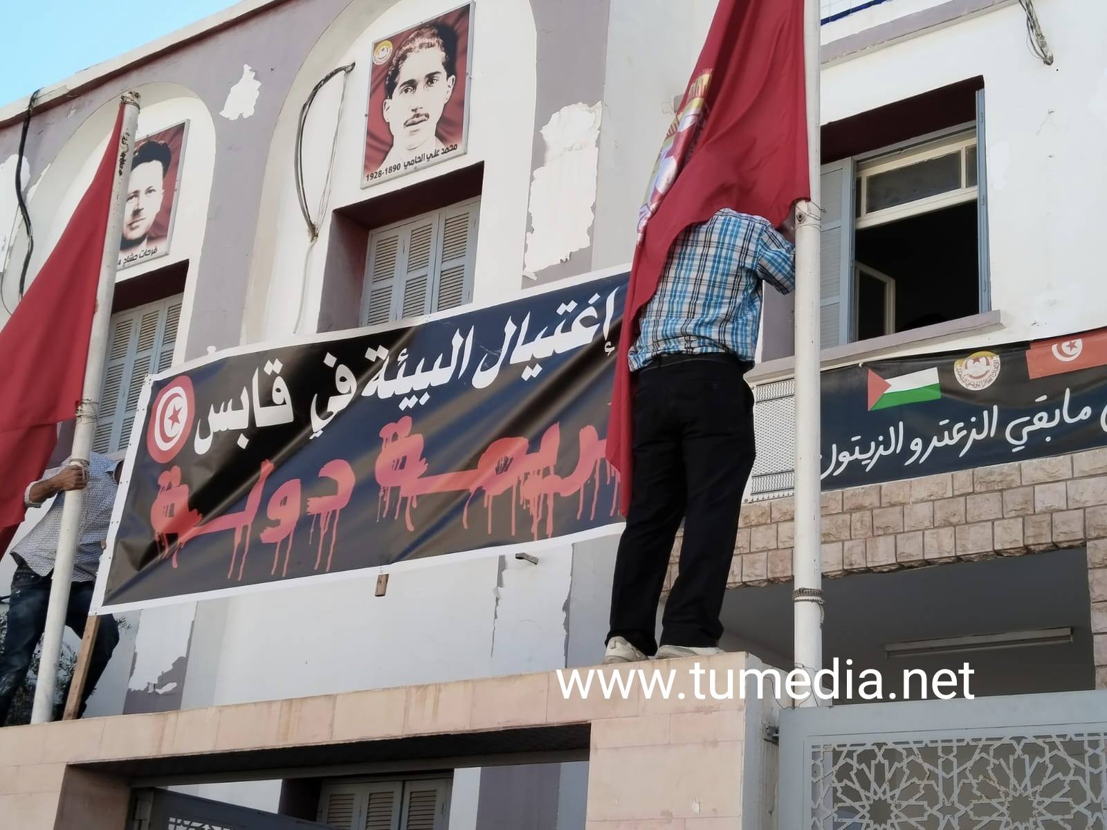 مواطنون وناشطون قضوا الليل في الطرقات لدعم مطالب أهالي قابس، بعد أن ضاقت بهم السبل من التلوث وآثاره الكارثية على صحتهم وعلى الوضع البيئي بالولاية، حيث اختفت الواحات، نفقت الأسماك، وانحنى النخيل ليس تحت ثقل العراجين، بل لعجز التربة عن توفير مقومات الحياة والنمو، في مشهد يشبه وداع الطبيعة قبل سقوطها النهائي.
