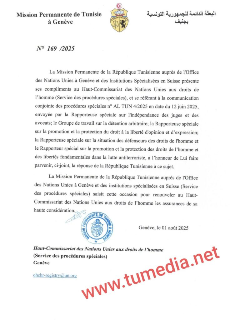 كما أكدت تونس أن الإجراءات اتبعت القوانين الوطنية والضمانات الدولية، بما يشمل: