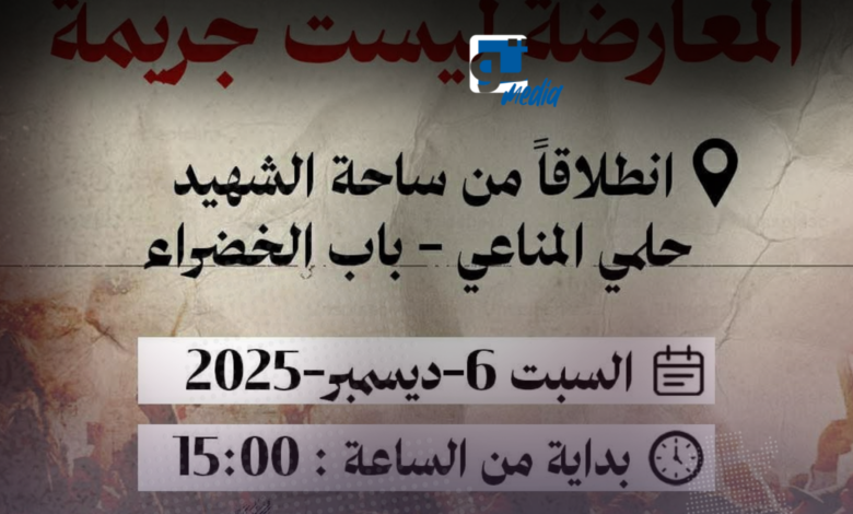 مجموعة من نشطاء المجتمع المدني يدعون إلى مسيرة السبت 6 ديسمبر للتعبير عن رفض الظلم ورفض تجريم العمل السياسي المعارض